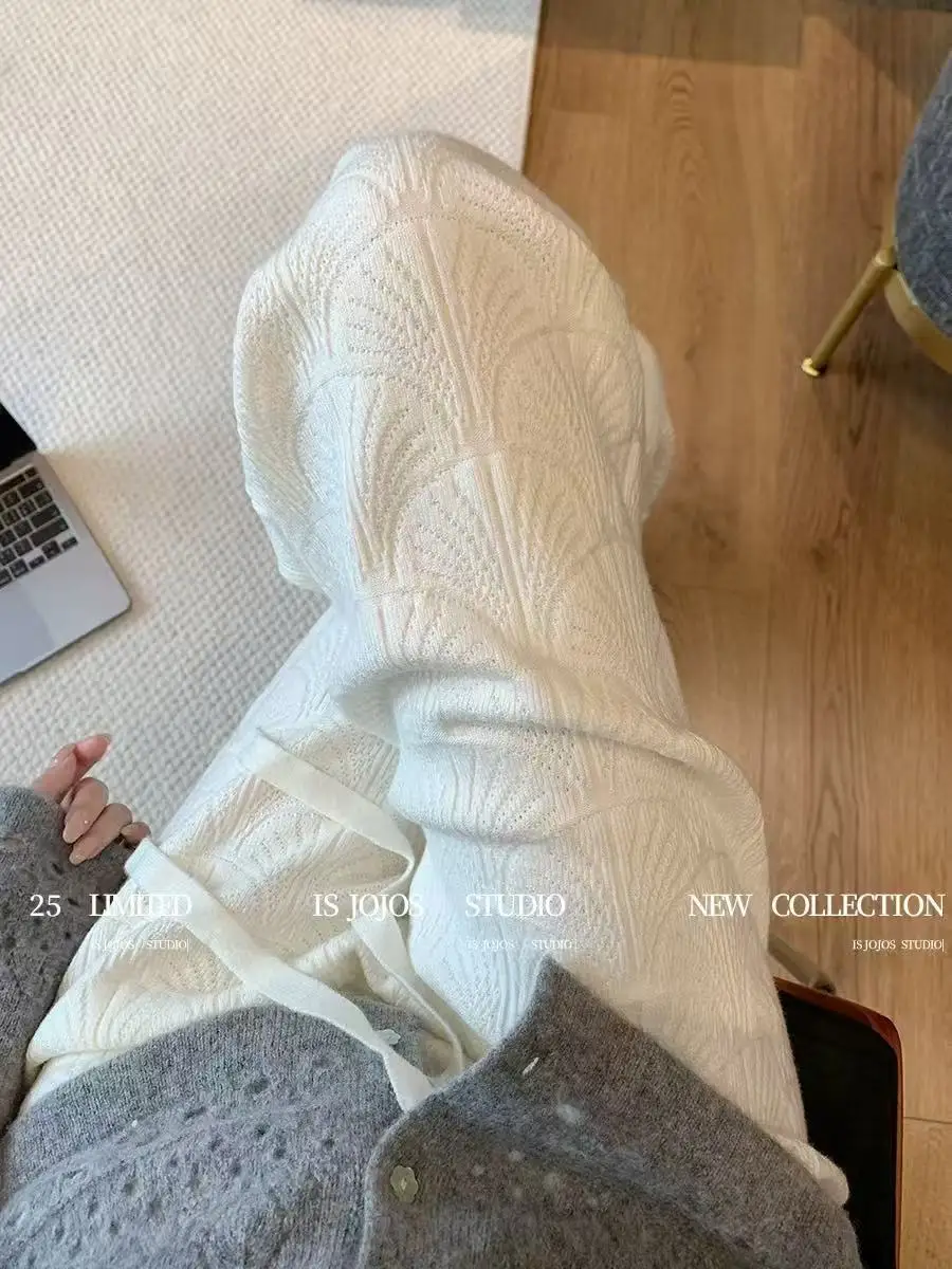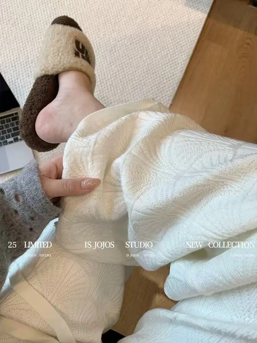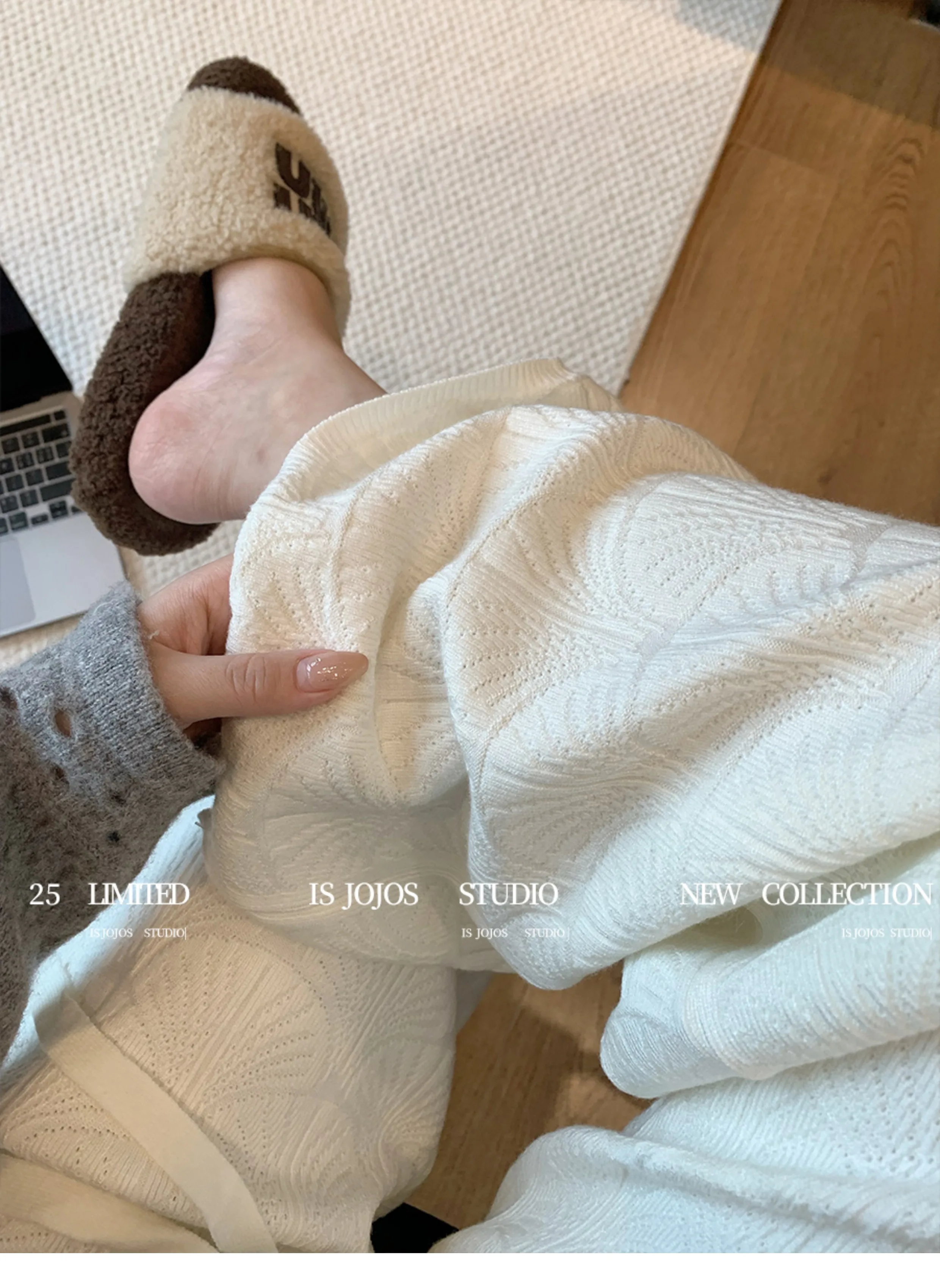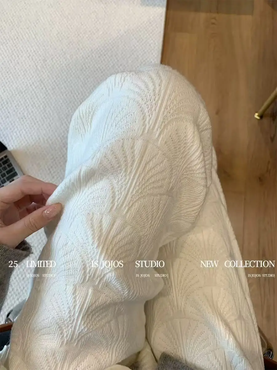 White Jacquard Knit Wide-Leg Pants for Women Winter 2025 New Thickened Lazy Style Gentle Slimming Draped Casual Pants