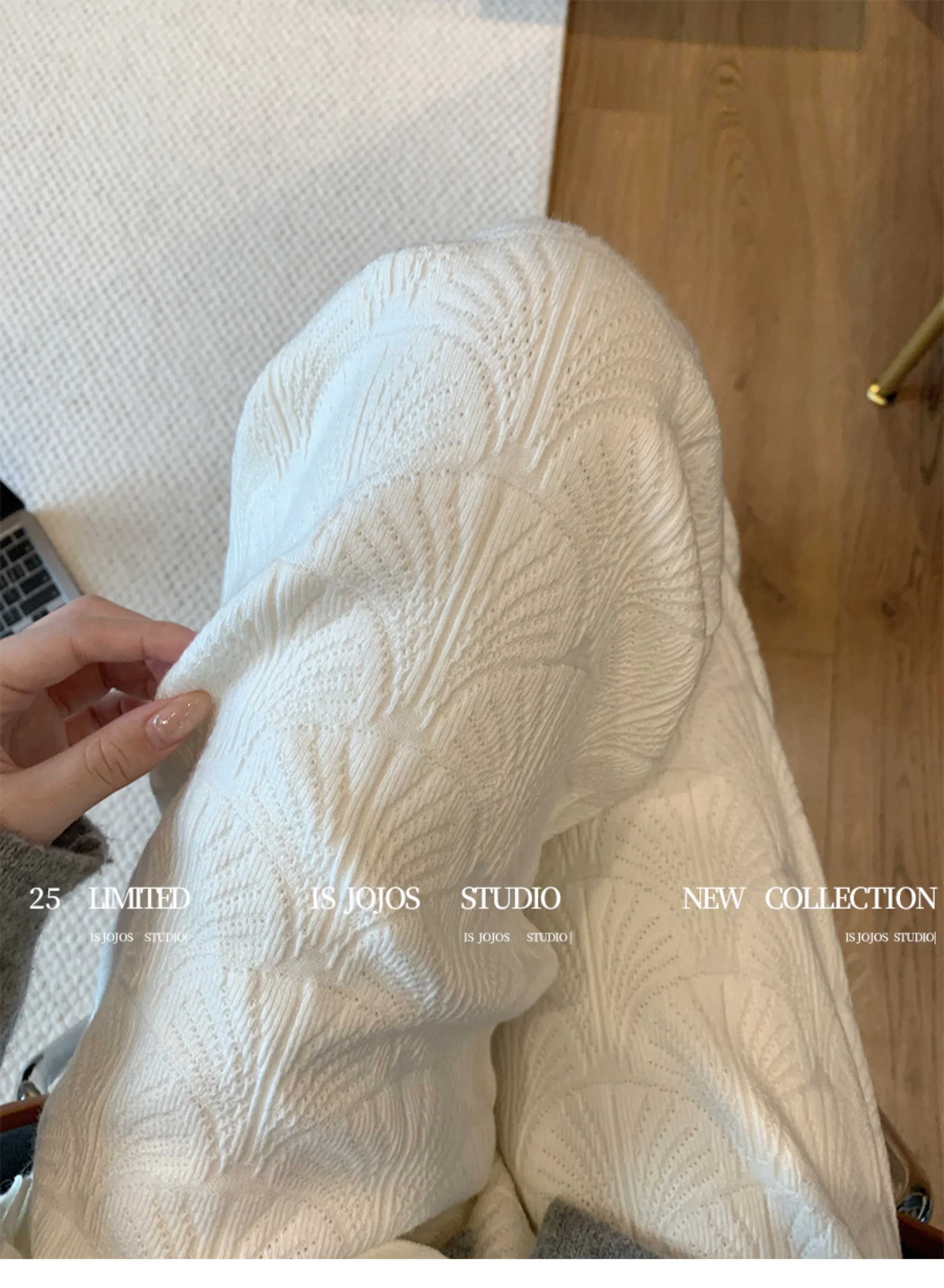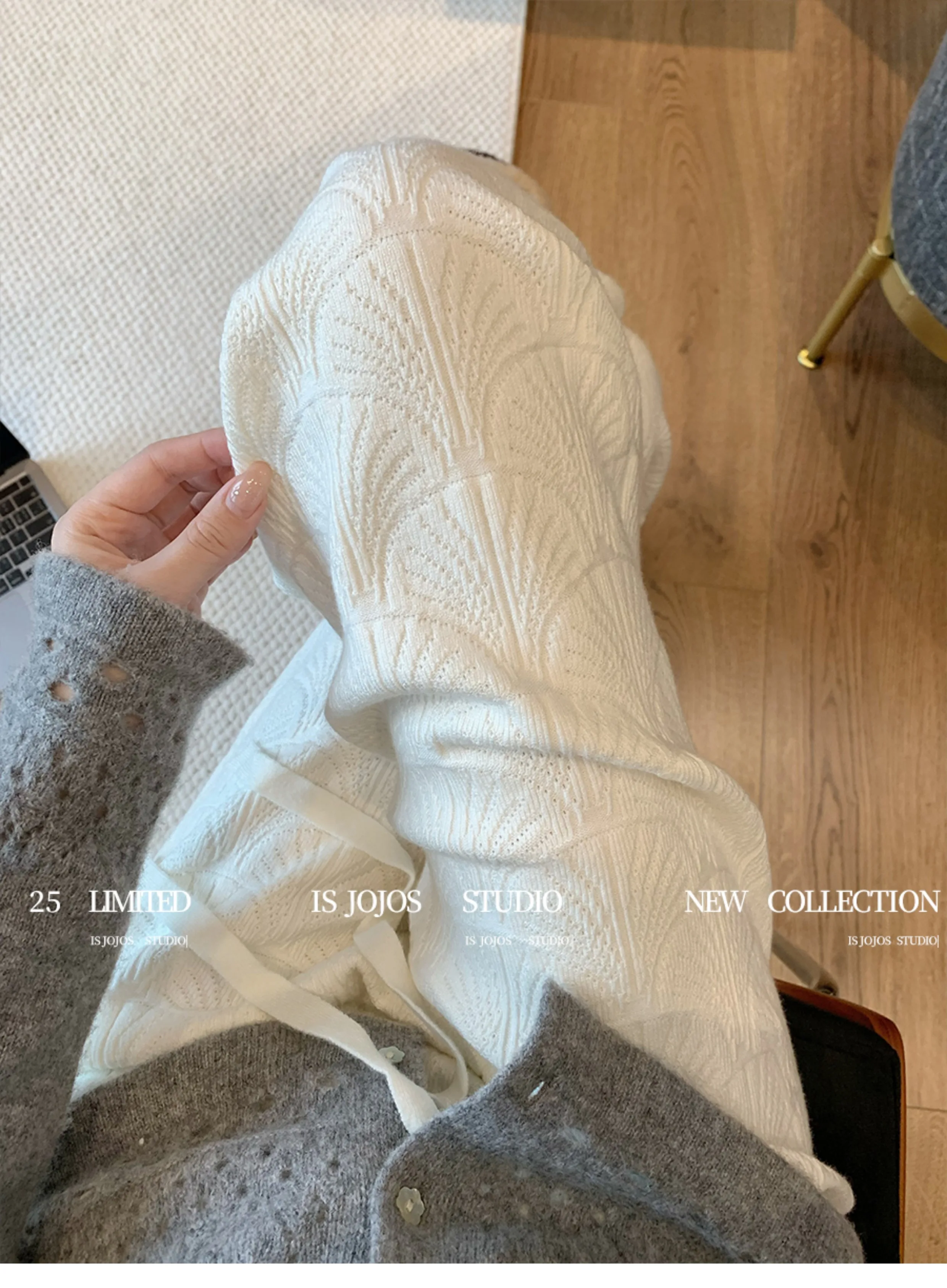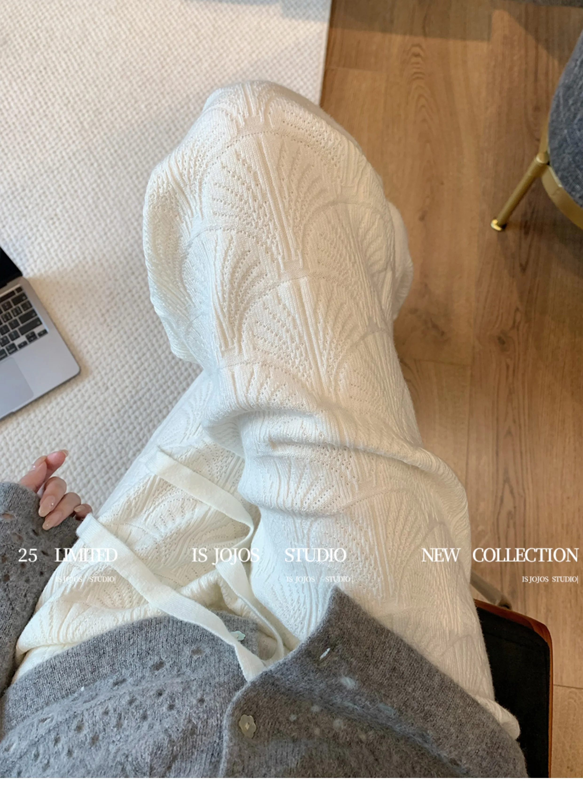White Jacquard Knit Wide-Leg Pants for Women Winter 2025 New Thickened Lazy Style Gentle Slimming Draped Casual Pants