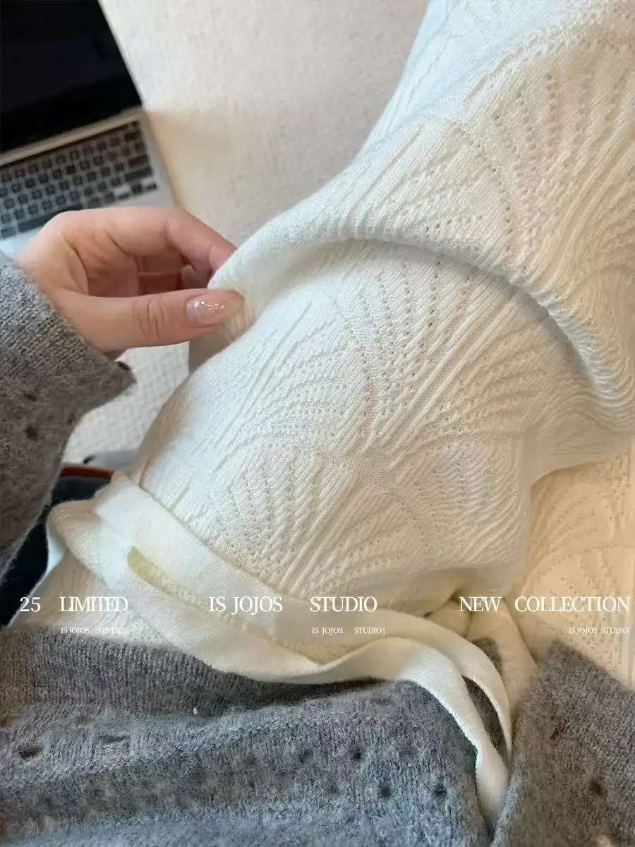 Be the first to review “White Jacquard Knit Wide-Leg Pants for Women Winter 2025 New Thickened Lazy Style Gentle Slimming Draped Casual Pants”